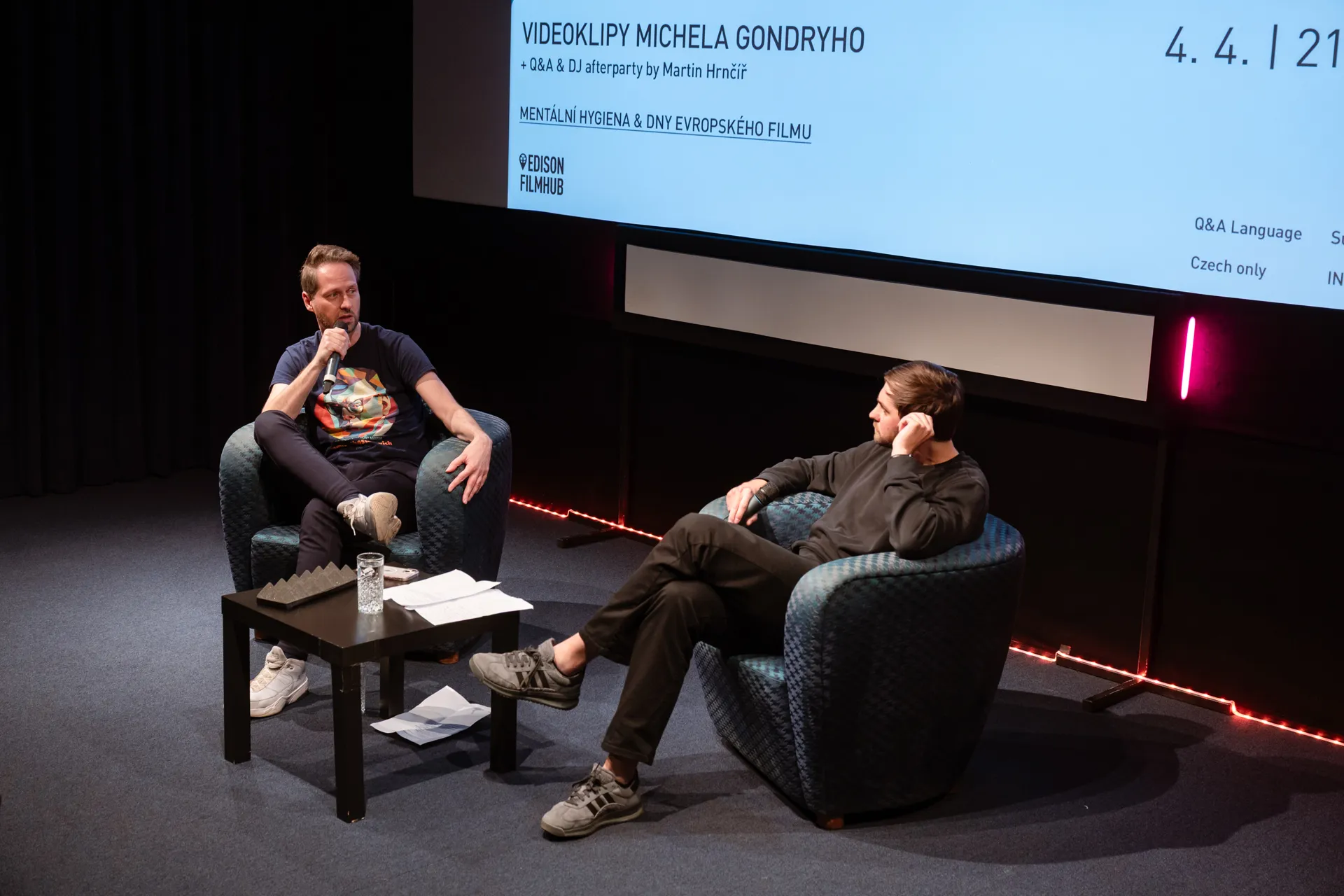 The late evening belonged to the traditional healing block Mental Hygiene with Aleš Stuchlý. This time, the program included video clips by Michel Gondry — poetic, playful and melancholic. Film historian Martin Hrnčíř provided expert insight, and the evening was rounded off with a DJ party that transformed the film experience into a dance mood.
