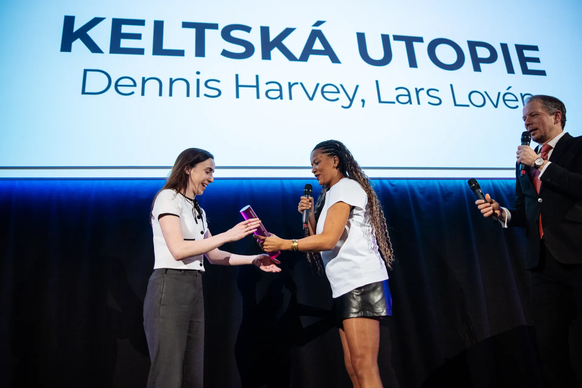 The awards were presented by the jury chairs Zuzana Tvarůžková (Film & Music section) and Dagmar Sedláčková (First Time section). The winners received their glass cylinders through representatives of their embassies.